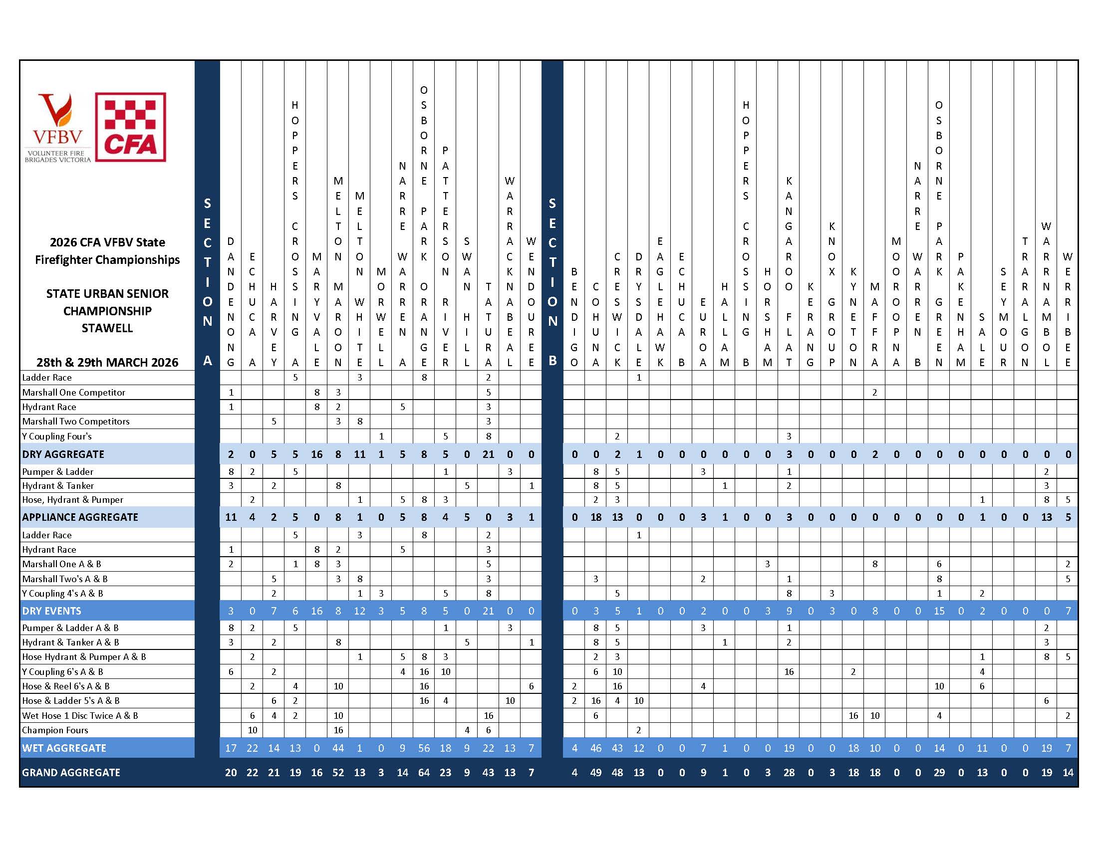 Final results for the 2026 State Urban Senior Championship held in Stawell on Saturday 28th and Sunday 29th March 2026 are now available.