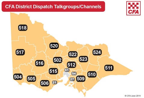 The map and associated table below ensure all brigades and members will have access to one complete visual list of digital talkgroups, as well as current and previous analogue channels for each district.