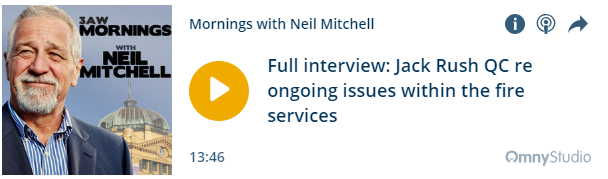 Jack Rush RFD QC has been interviewed on Neil Mitchell's Breakfast Program on 3AW.