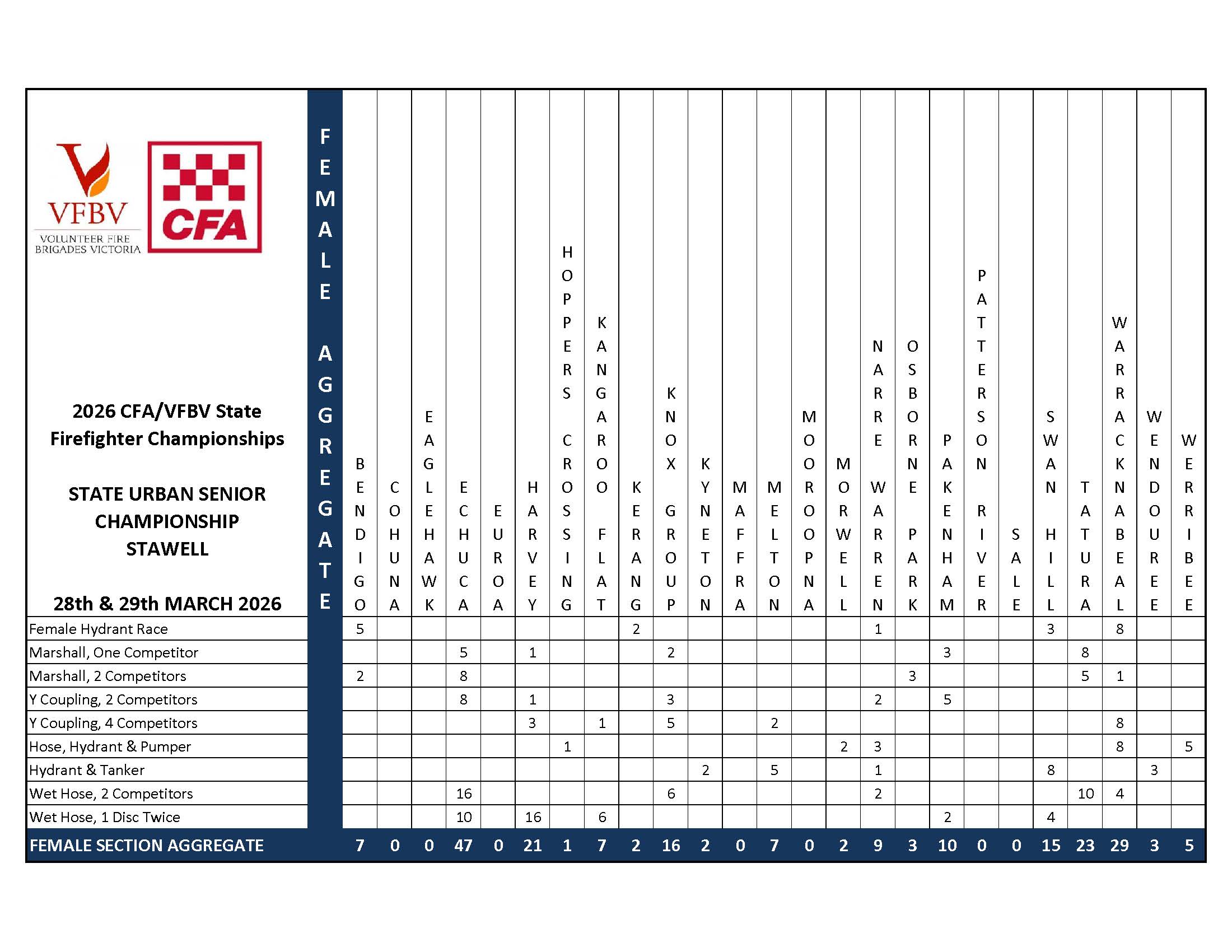 Final results for the 2026 State Urban Senior Championship held in Stawell on Saturday 28th and Sunday 29th March 2026 are now available.