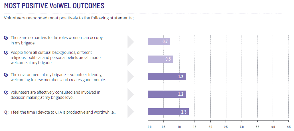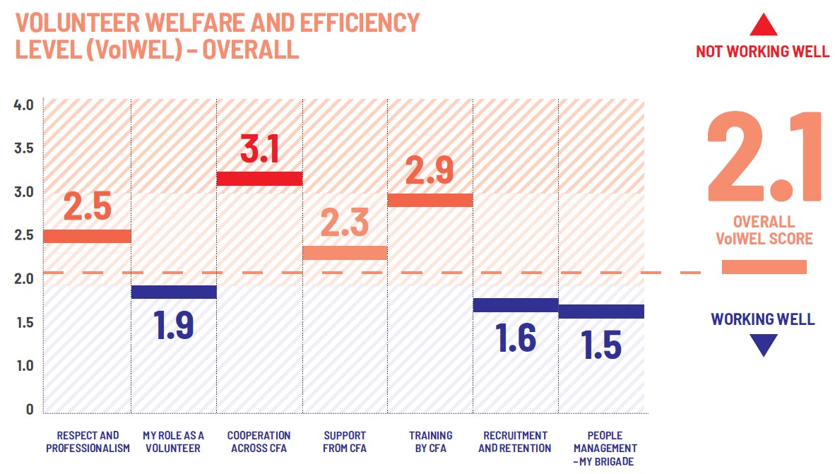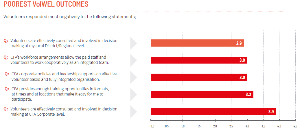 This survey is a critical feedback loop and assists us to understand the areas that volunteers want us to advocate for. The results of the survey are public and are presented in detail to Government, EMV and CFA.