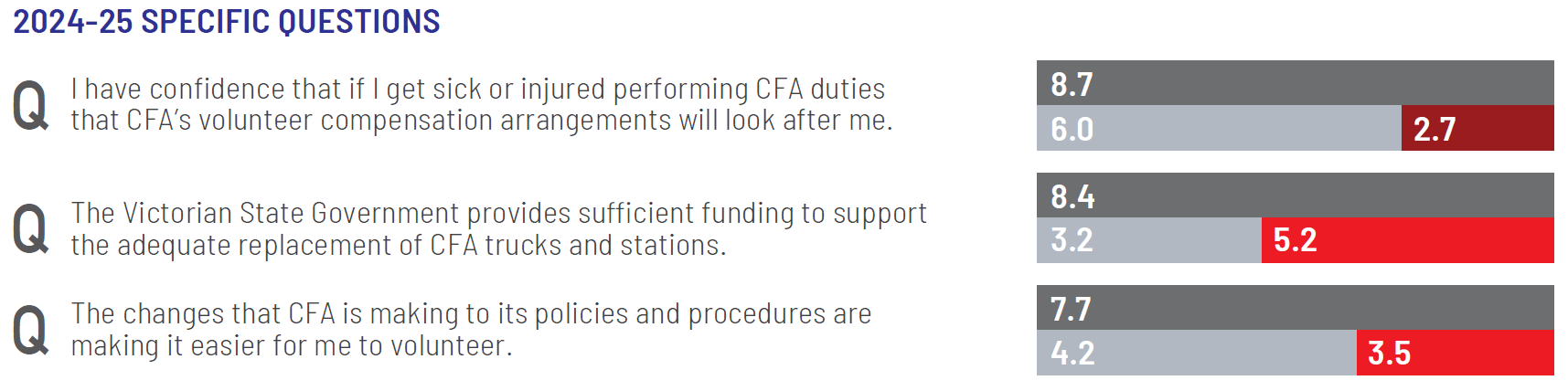 I would like to take this opportunity to thank each and every single one of the 2,115 volunteers who participated in the 2024/25 survey and invite you to all study the results closely. They are extremely powerful, and allow us to highlight to CFA and government the areas you tell us require the most support.