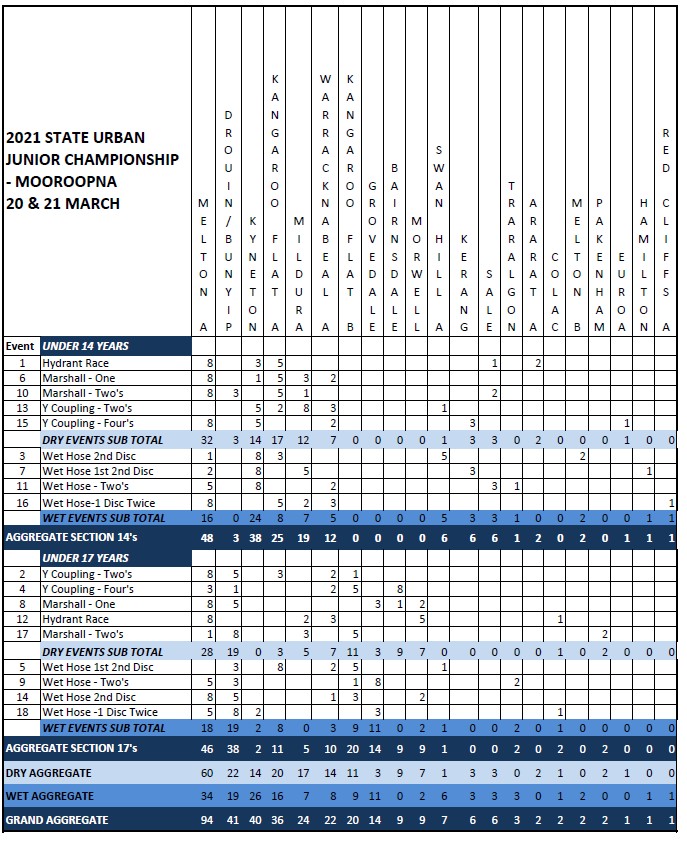 Final results for the 2021 State Urban Junior Championships held in Mooroopna on Saturday 20 and Sunday 21 March 2021 are now available.