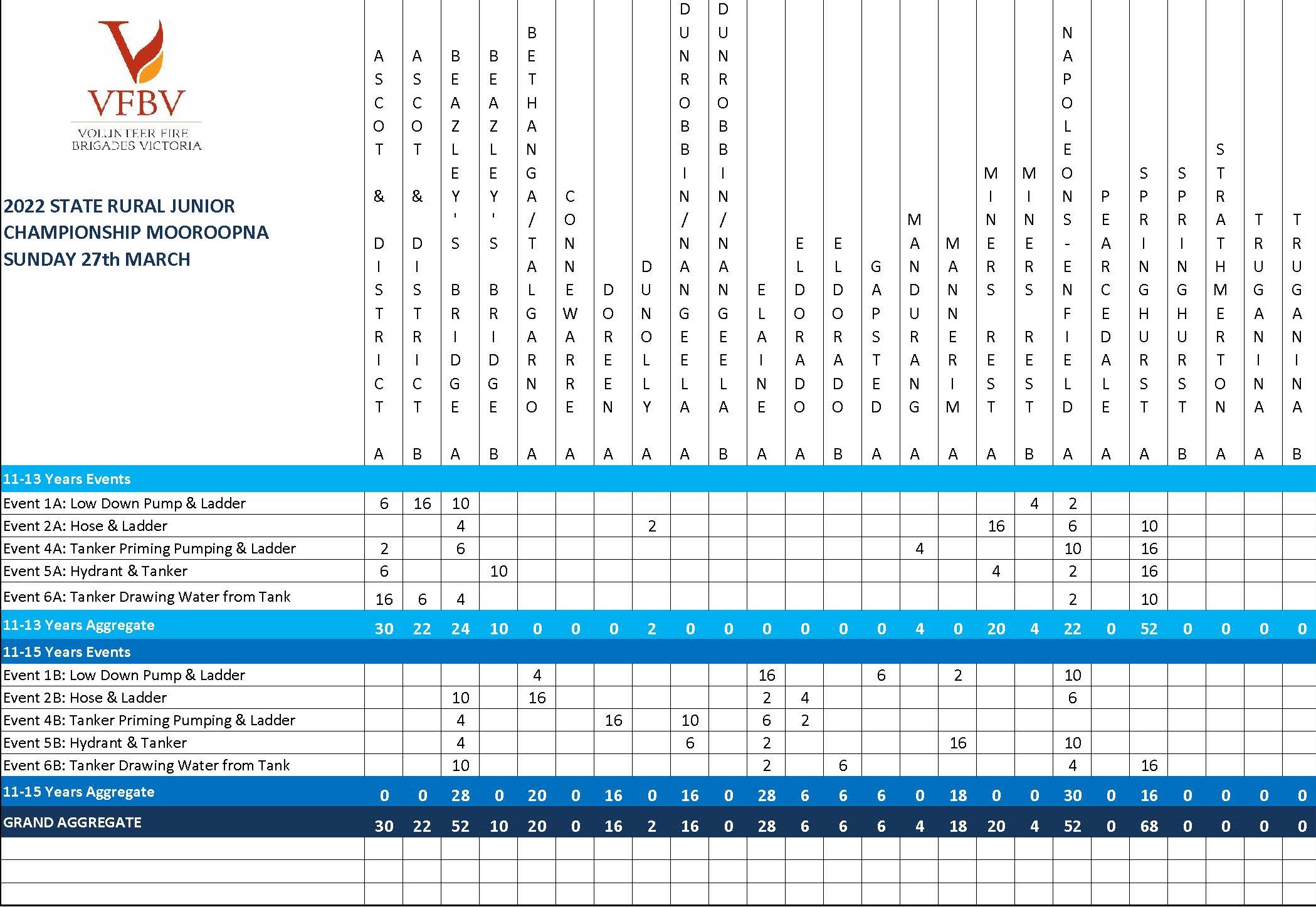 Final results for the 2022 State Rural Junior Championships held in Mooroopna on Sunday 27 March 2022 are now available.