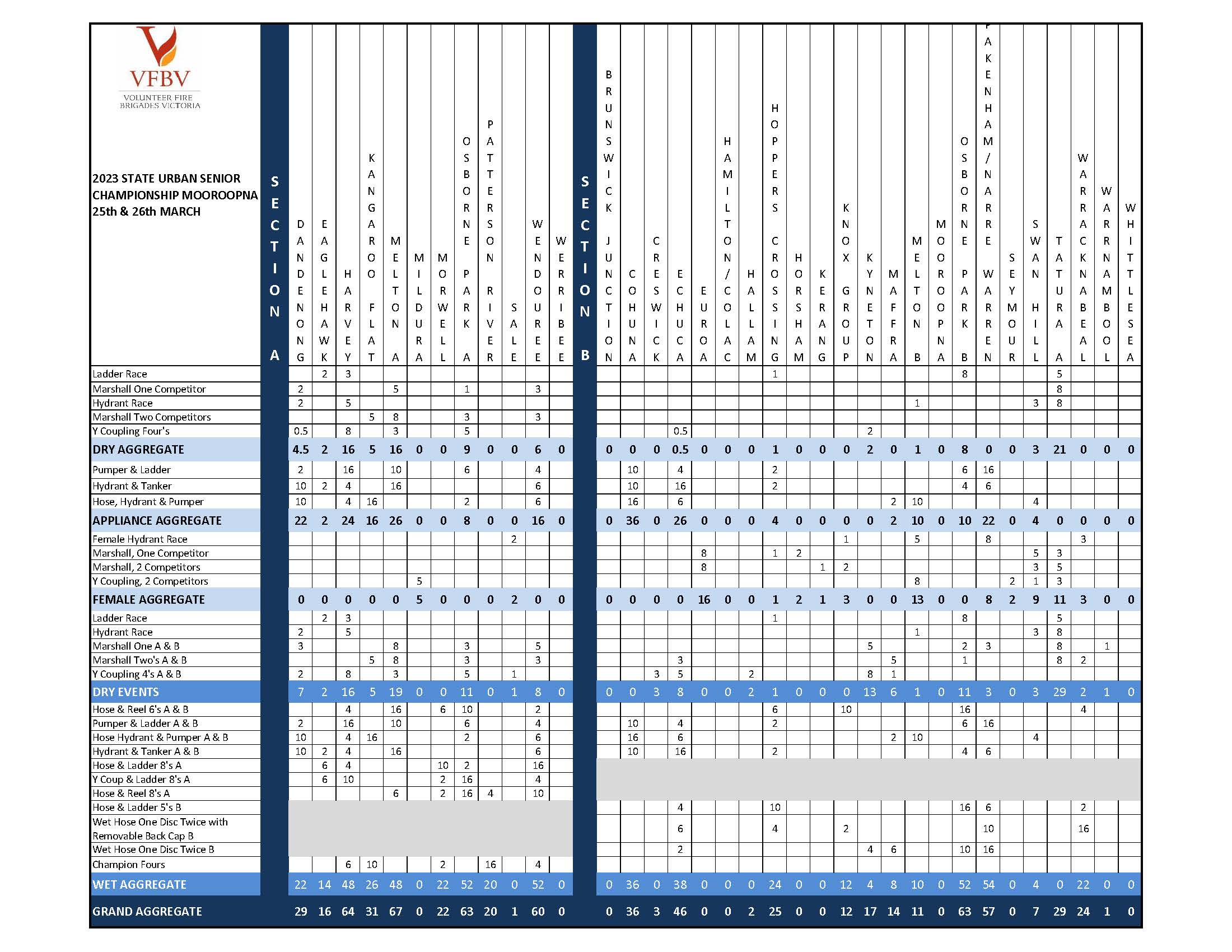 Final results for the 2023 State Urban Senior Championships held in Mooroopna on Saturday 25 and Sunday 26 March 2023 are now available.