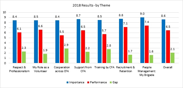 - In previous surveys, the youngest cohort that responds (18 – 25 years of age) tended to be the most satisfied. Concerningly, this cohort in 2017 have the biggest gaps for the themes of Training by CFA, Recruitment and Retention and People Management – My Brigade, when compared with other age groups.