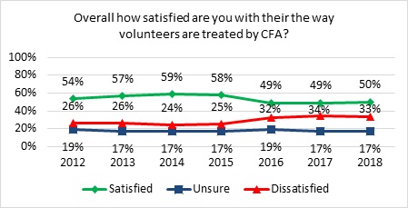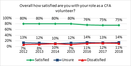 - Overall satisfaction with CFA volunteer role continues to decline
