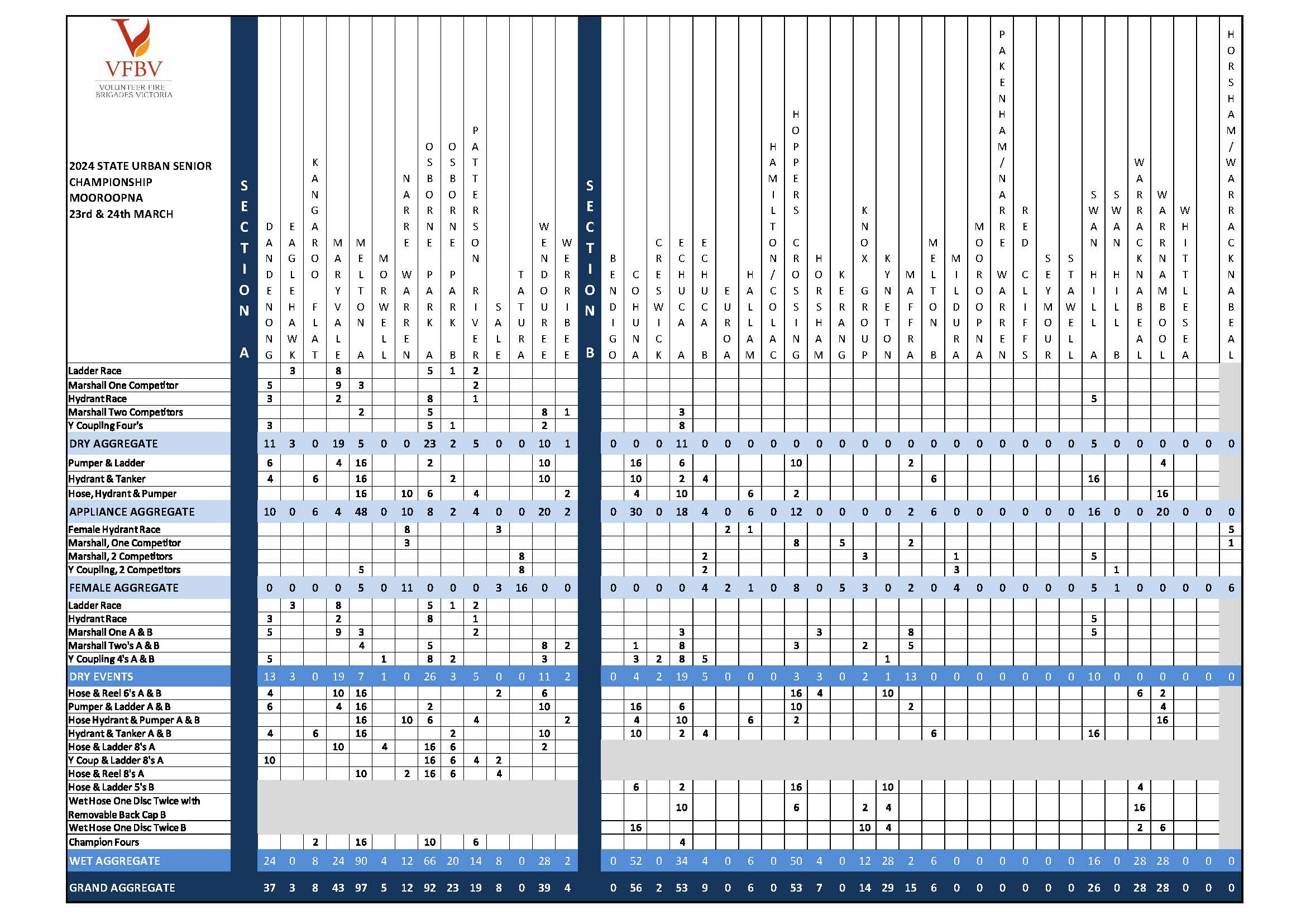 Final results for the 2024 State Urban Senior Championships held in Mooroopna on Saturday 23 and Sunday 24 March 2024 are now available.