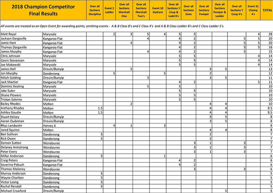 Note Tasmanian Fire Service Retained Volunteers Association have elected to not take part this year, please contact TRVFA if you have any queries