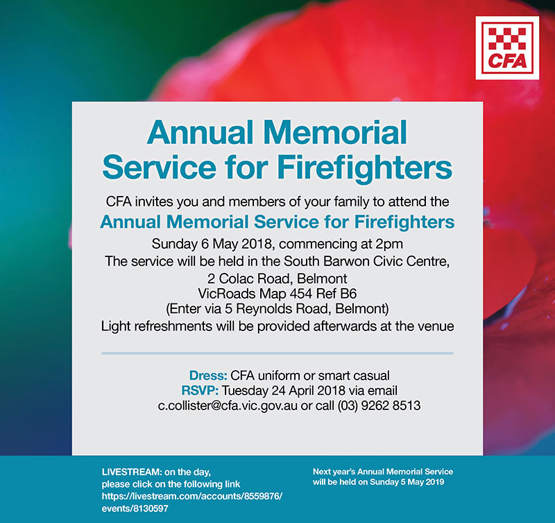 This year marks the 20th anniversary of the passing of the five Geelong West firefighters (2/12/1998) at Linton and also 35th Anniversary of Ash Wednesday (16/2/1983) where CFA Members from Nar Nar Goon, Narre Warren, Panton Hill and Wallacedale lost their lives on that day at various areas around Victoria.